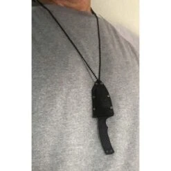 - Black molded synthetic sheath with 18″ breakaway neck chain