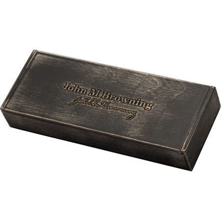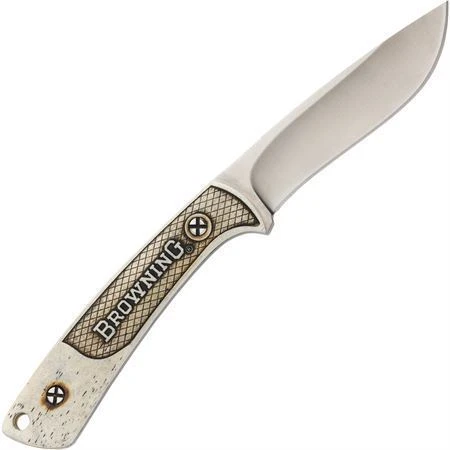 Model – BR0200. Browning 0200 – JMB Presentation Knife. 7.75″ overall. 3.5″ satin finish stainless blade. White bone handle. Full tang. Lanyard hole. Laser engraved John M. Browning handle artwork. Comes with wooden presentation box. Boxed. Made in China.