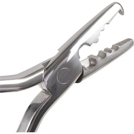 Model – CM23017. Cuda HD Split Ring Plier. Cuda. 7.25 inch overall. Full tang. Heavy duty ring splitter. Cuts Mono and Fluorocarbon. Integrated crimper. Blue non-slip Cuda scale pattern grips. Clam packed.
