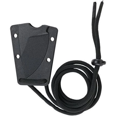 Model – CR2415. CRKT Tailbone Fixed Blade Black. 6.25″ (15.88cm) overall. 2.13″ (5.41cm) black stonewash finish 8Cr13MoV stainless blade. Orange paracord wrapped handle. Full, extended tang. Lanyard hole. Finger ring. Black thermoplastic neck sheath. Designed by T. J. Schwarz. Boxed. Made in China.
