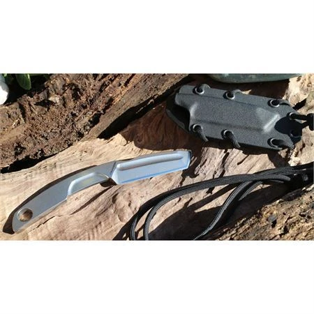 Model – EX0206SW. NK3 Neck Knife Stonewash. 6 inch overall. 2.75 inch stonewash finish Bohler N690 stainless tanto blade. Lanyard hole. One-piece construction. Black Kydex neck sheath. Boxed.