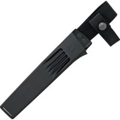 Model – FNA2. 12.75″ overall. 8″ laminate VG-10 stainless blade. Black checkered Kraton handle. Full tang. Lanyard hole. Black leather belt sheath.