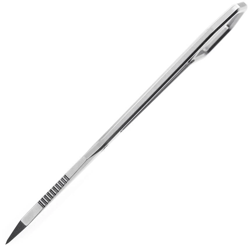 Model/Part Number – KG0001A1. Kansept Hex Neck Knife SW. 5.63″ (14.3cm) overall. 2″ (5.08cm) stonewash finish 14C28N Sandvik stainless blade. One-piece construction. Finger ring. Ball chain lanyard. Black Kydex neck sheath. Boxed. Made in China.