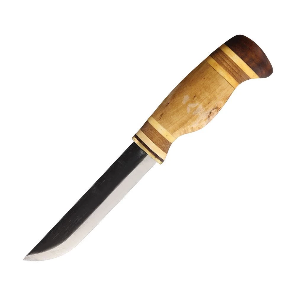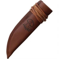 Model – KLKT23EB. Kellam Tundra Leuku. 10″ (25.4cm) overall. 5.75″ (14.61cm) carbon steel blade. Curly birch and stacked wood handle. Brown leather belt sheath. Bulk packed. Made in Finland.
