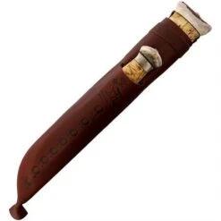 Model – KLKT23LL. Kellam Tundra Leuku Set. Carbon steel blade. Curly Birch handle. Reindeer horn pommel. Includes: 13.25″ overall fixed blade with 8.25″ blade; 7.75″ overall skinner with 3″ blade. Brown leather belt sheath. Bulk packed. Made in Finland.