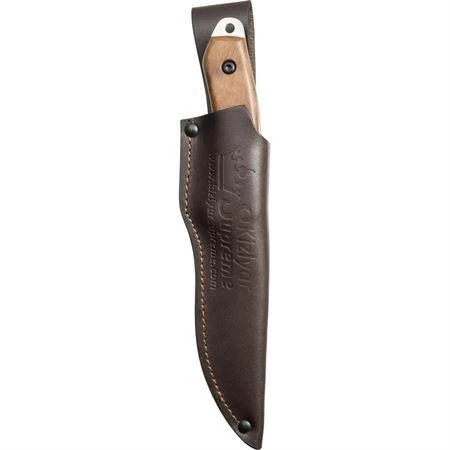 Model – KK0100. Corsair Satin. 9 inch overall. 4.5 inch satin finish AUS-8 stainless drop point blade. Full, extended tang. Lanyard hole. Root nut handle. Brown leather belt sheath. Boxed.