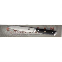 Model – KO031. Komoran 031 – Utility Knife. 9.5″ overall. 5″ Damascus steel blade. Black micarta handle. Stainless guard and pommel. Full tang. Boxed. Made in China.