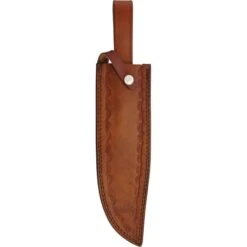 Model – MR621. Marbles Stacked Leather Bowie. 15″ (38.1cm) overall. 10″ (25.4cm) satin finish stainless bowie blade. Stacked leather handle. Stainless guard. Brown leather belt sheath. Boxed. Made in Pakistan.