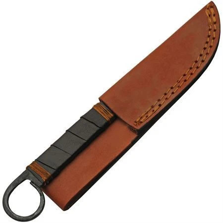 Model – PA4443. Ball Nose Drop Point. 9 inch (22.86cm) overall. 4 inch (10.16cm) hammered finish stainless blade. Black leather wrapped handle. Full, extended tang. Finger ring. Brown leather belt sheath. Boxed. Made in Pakistan.