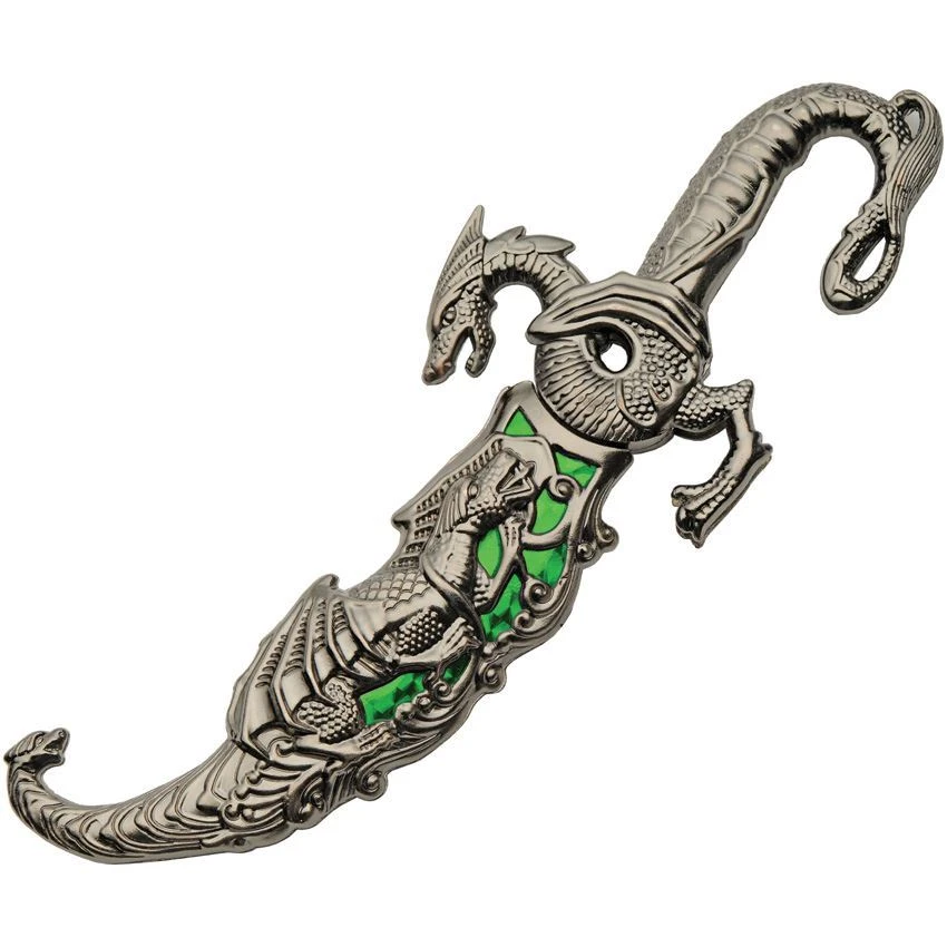 Model – CN211155GN. Rite Edge Green Dragon Dagger. 10″ (25.4cm) overall. 5″ (12.7cm) satin finish stainless blade. Metal alloy handle. Dragon shaped handle and sheath. Boxed. Made in China.