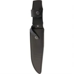 Model/Part Number – RP402. Roper Knives Yellowhorse Wolftrax Skinner. 6.5″ (16.51cm) overall. 2.75″ (6.99cm) satin finish stainless blade. Blade etching. Full tang. Spiny oyster and red stone handle with wolf inlay. Black leather belt sheath. Boxed. Made in China.