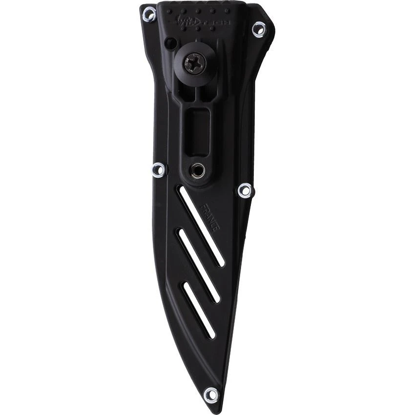 Model – WSWT40125. Wild Steer CRAZY TECH Fixed Blade. 8.19″ overall. 3.54″ 14C28N stainless steel satin blade. Fire paracord handle. Black nylon sheath. Made in France.