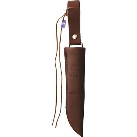 Model – WJ92. Wood Jewel Knives 92 – Mushroom Knife. 7.75″ (19.69cm) overall. 2.25″ (5.72cm) mirror finish stainless blade. Curly Birch handle. Reindeer horn pommel. Horn spacers. Brush end. Mushroom on sheath. Due to the natural materials used, knife dimensions could vary. Brown leather belt sheath. Bulk packed. Made in Finland.
